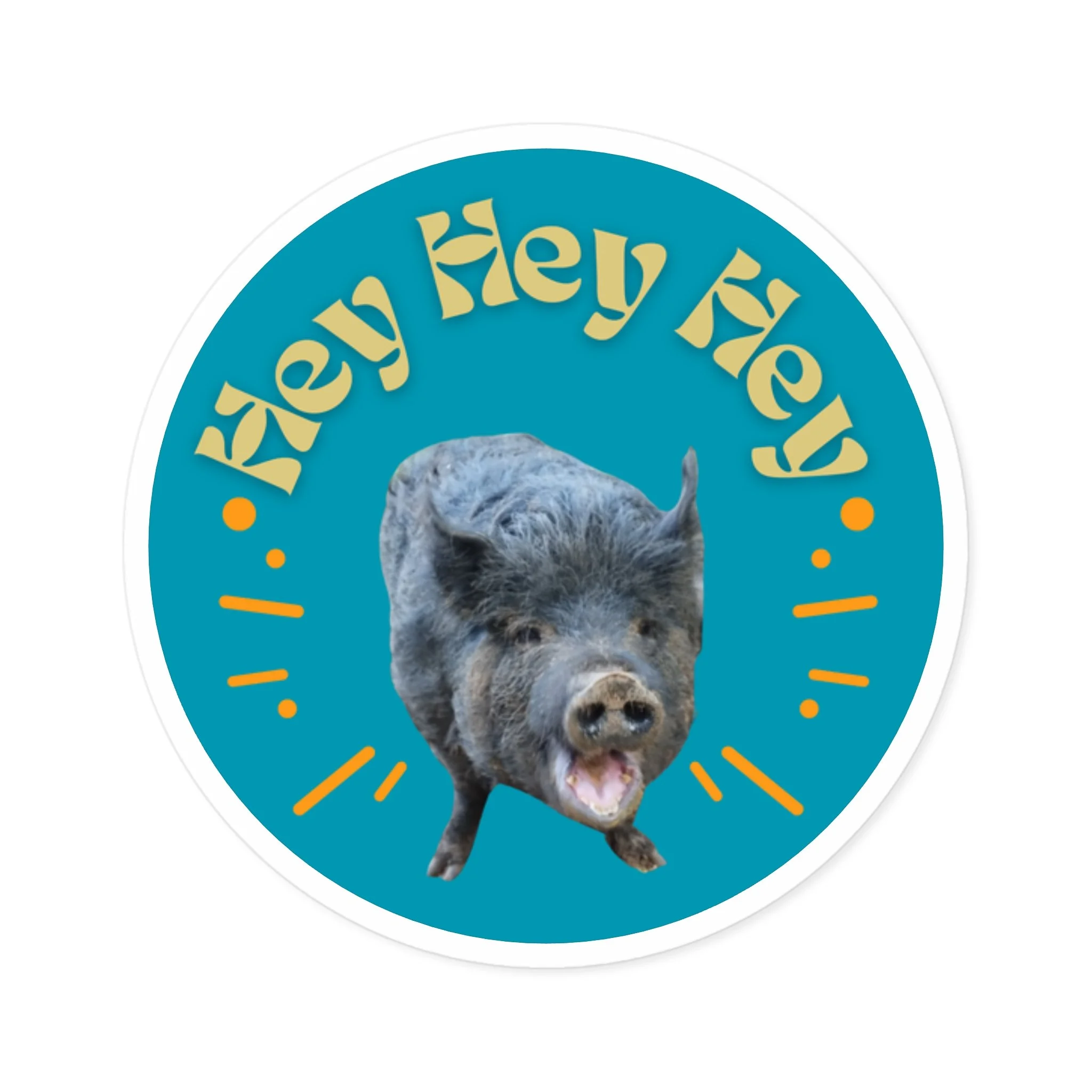 Categories: All Eggs Home Goods Stickers Apparel Pork All / Stickers Esther "Hey Hey Hey" round sticker from $4.50 View Options